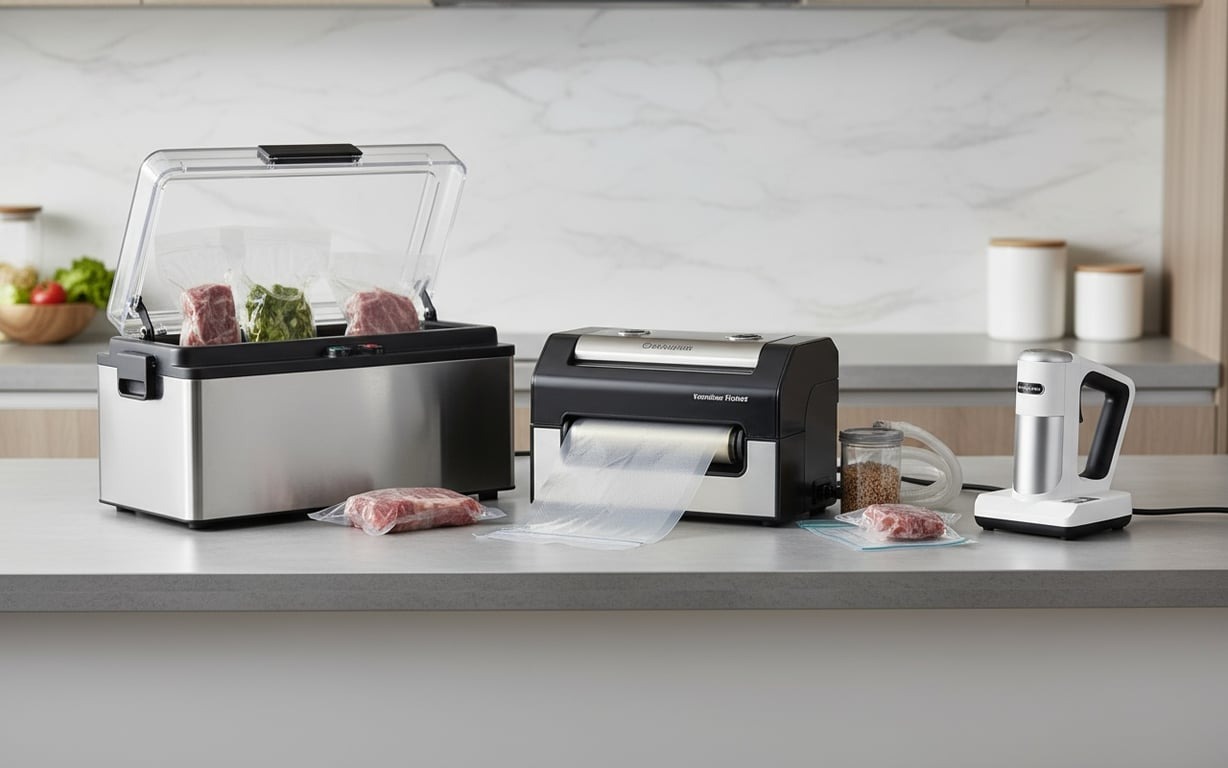 Există două categorii principale: aparate de vidat externe (sau “clamp style”), ideale pentru uz casnic, și aparate de vidat cu cameră (“chamber vacuum sealers”), destinate uzului profesional sau celor care videază lichide.