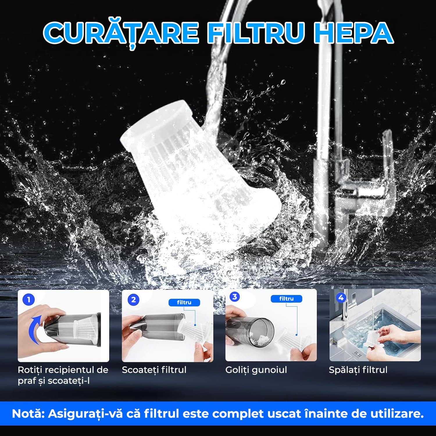 •Filtru: HEPA lavabil, retine particule fine si alergeni