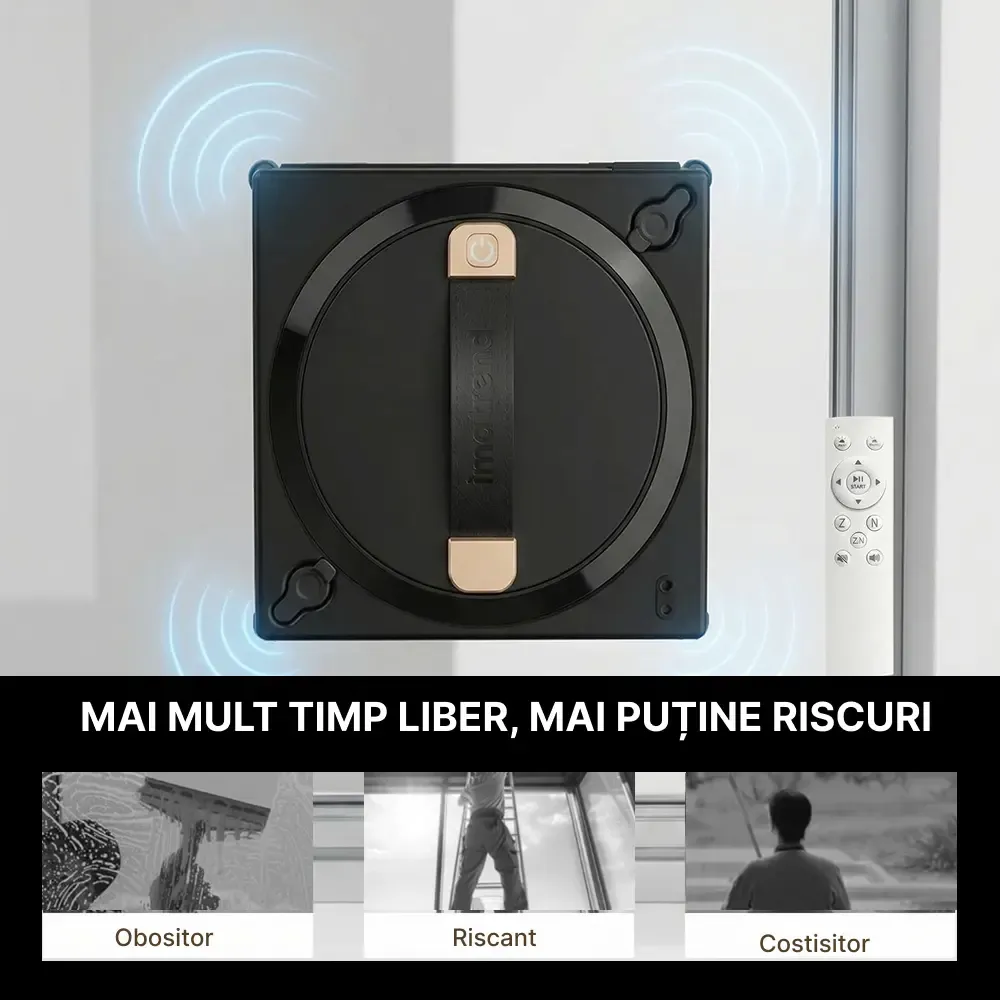 Descopera robotul de curatare a geamurilor IMA Trend®, aliatul tau pentru ferestre impecabile fara efort! Cu un design modern si tehnologie avansata, robotul curata rapid si eficient, economisind timp si energie.