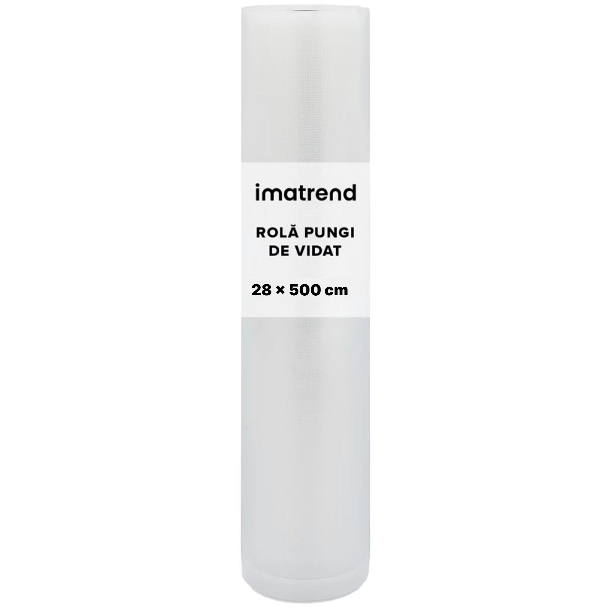 Rola de folie profesionala IMA Trend pentru aparate de vidat alimente, dimensiune 28x500cm, compatibila cu majoritatea modelelor. Rezistenta, fara BPA, reutilizabila si ideala pentru congelare, refrigerare sau gatit sous-vide.